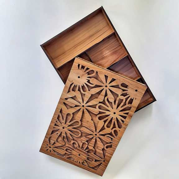 جعبه دکوری چوبی تقسیم دار با طراحی ظریف و برش لیزری، تلفیقی از سادگی مدرن و نقشمایههای الهامگرفته از هنر ایرانی. ساختهشده با طرح چوب طبیعی، مناسب برای نگهداری انواع لوازم شخصی، اکسسوری یا هدیه. انتخابی شیک و متفاوت برای دکور یا کادو.